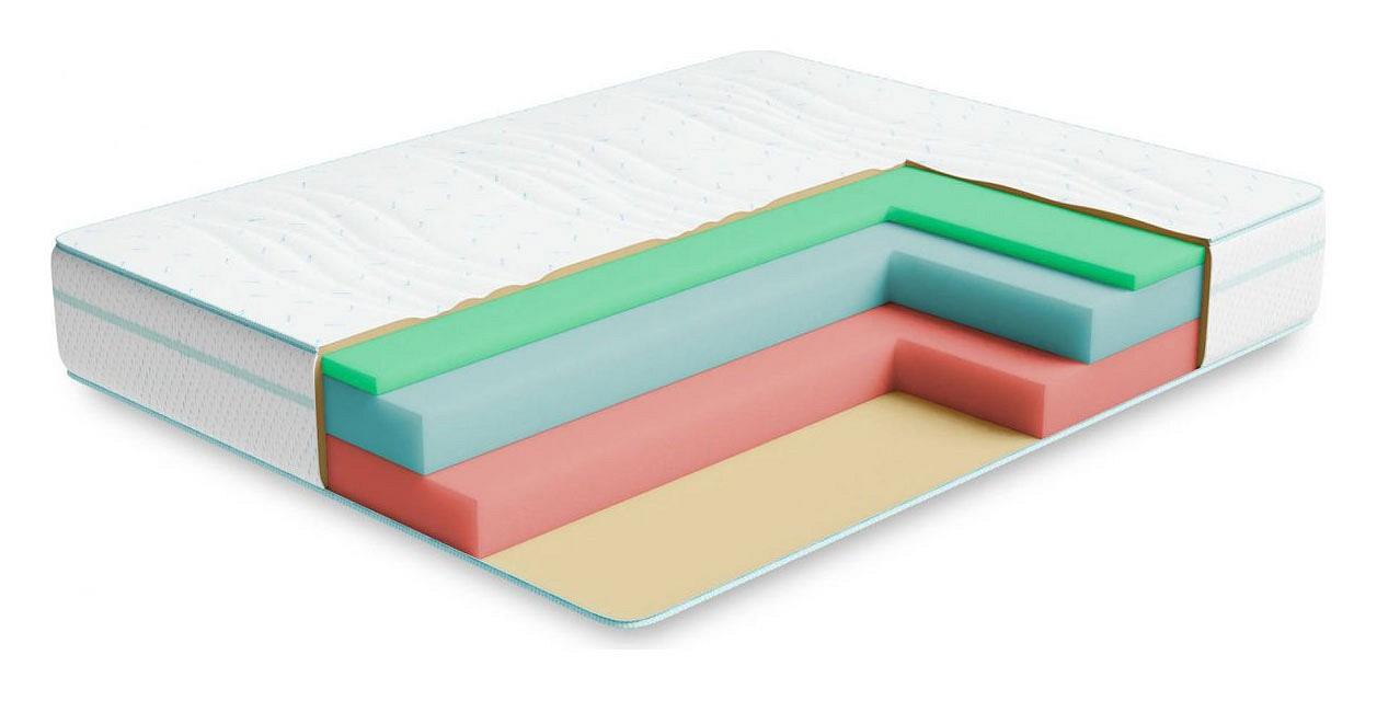 Основу матраса составляют 3 вида премиальной пены. Верхний слой - пена с памятью формы, которая создает воздушность и комфорт, точно повторяя и запоминая, каждый изгиб тела. Средний слой- слой пены, которая обладает исключительной упругостью, этот слой принимает на себя основную нагрузку и распределяет ее по всей поверхности, оказывая обратное давление лишь там где это необходимо. Нижний слой сделан из особожесткой и прочной пены, которая и позволяет матрасу выдерживать очень высокие нагрузки на спальное место (до 150 кг). Чехол матраса выполнен из особо мягкого трикотажа высокой плотности, итальнского производства, ткань чехла не впитывает запахи и легко отмывается.Бурлет (бок) матраса выполнен из мебельной ткани, которая придает ему законченный вид и увеличивает срок его службы. Чехол стегается на 15 мм пене.