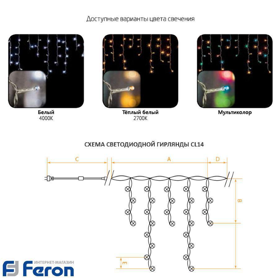Гирлянда светодиодная "бахрома", мультиколор, cl14