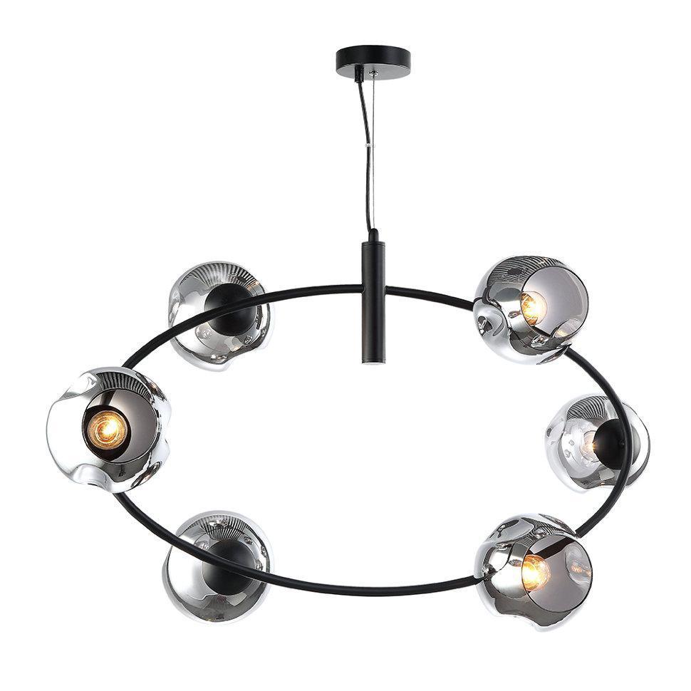 Космическим вращением экстравагантных планет вселенной вашего дома выглядит строгое металлическое кольцо, на котором основательно закрепились стеклянные, тонированные плафоны. «ФРЕРИ» - идеальный выбор ценителей LOFT.
