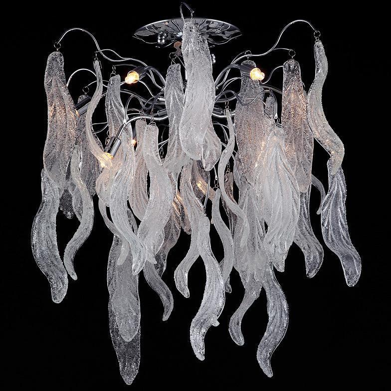 Данная модель входит в состав коллекции Vetro cristallO и исполнена в стиле модерн. Люстра имеет высоту 560 мм и диаметр 600 мм. Работает при напряжении 220-240 V.