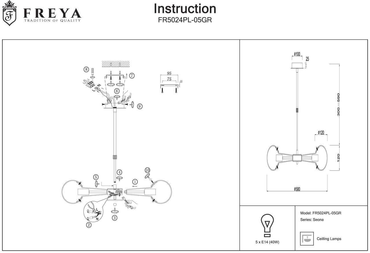 Подвесная люстра Freya Seona FR5024PL-05GR
