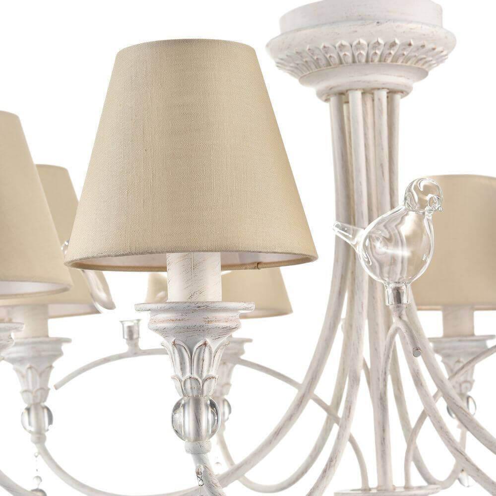 Дивная модель ARM139-08-W от немецкой компании Maytoni относится к коллекции Torino и отлично подойдет для установки на потолок в гостиной, оформленной в классическом стиле. Подвесная люстра Maytoni Torino ARM139-08-W с конусными плафонами осветит помещение площадью 17.8 кв. м. Производитель Maytoni рекомендует использовать для устройства лампы накаливания с цоколем E14 и мощностью 40 W. Прибор произведен с использованием материалов: текстиль, металл и ткань и может использоваться для натяжного потолка. Основным цветом товара является бежевый и белый. Торопитесь сделать заказ в интернет-магазине SvetONe.