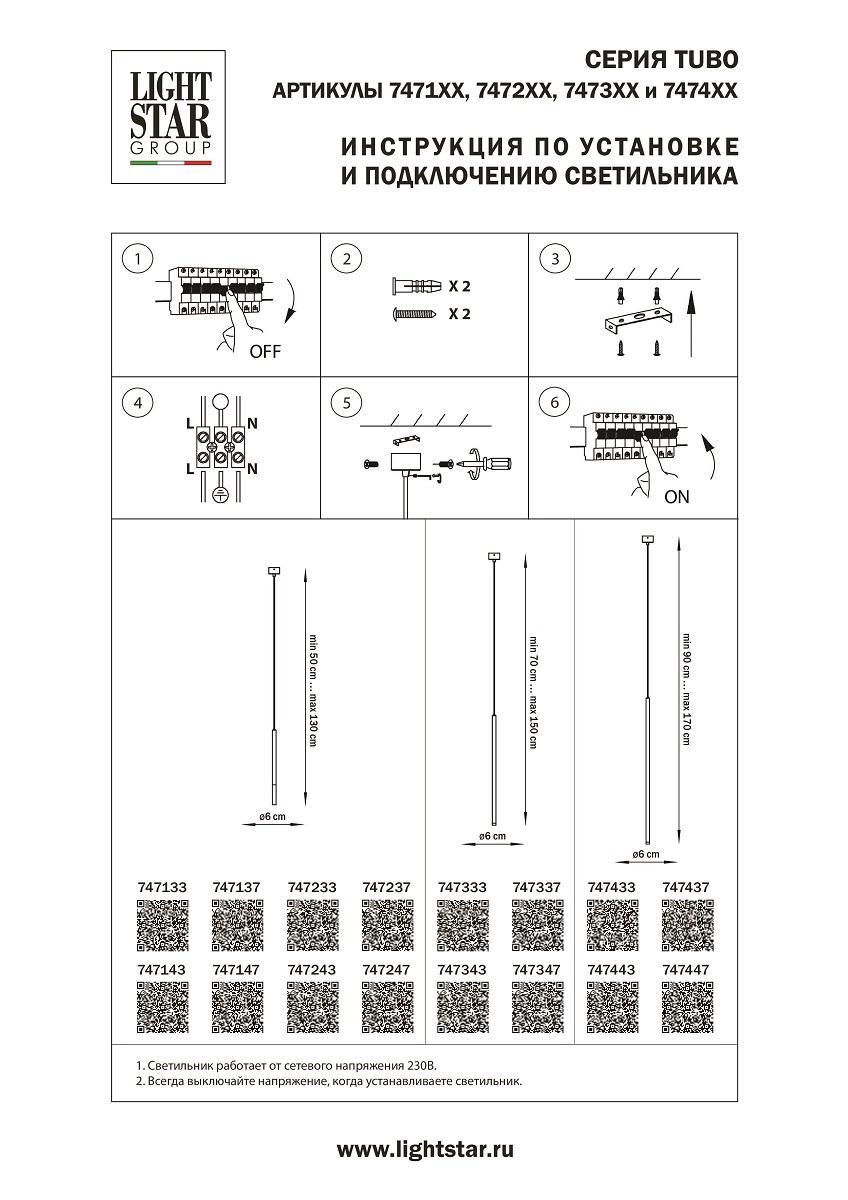 Подвесной светодиодный светильник Lightstar Tubo 747137