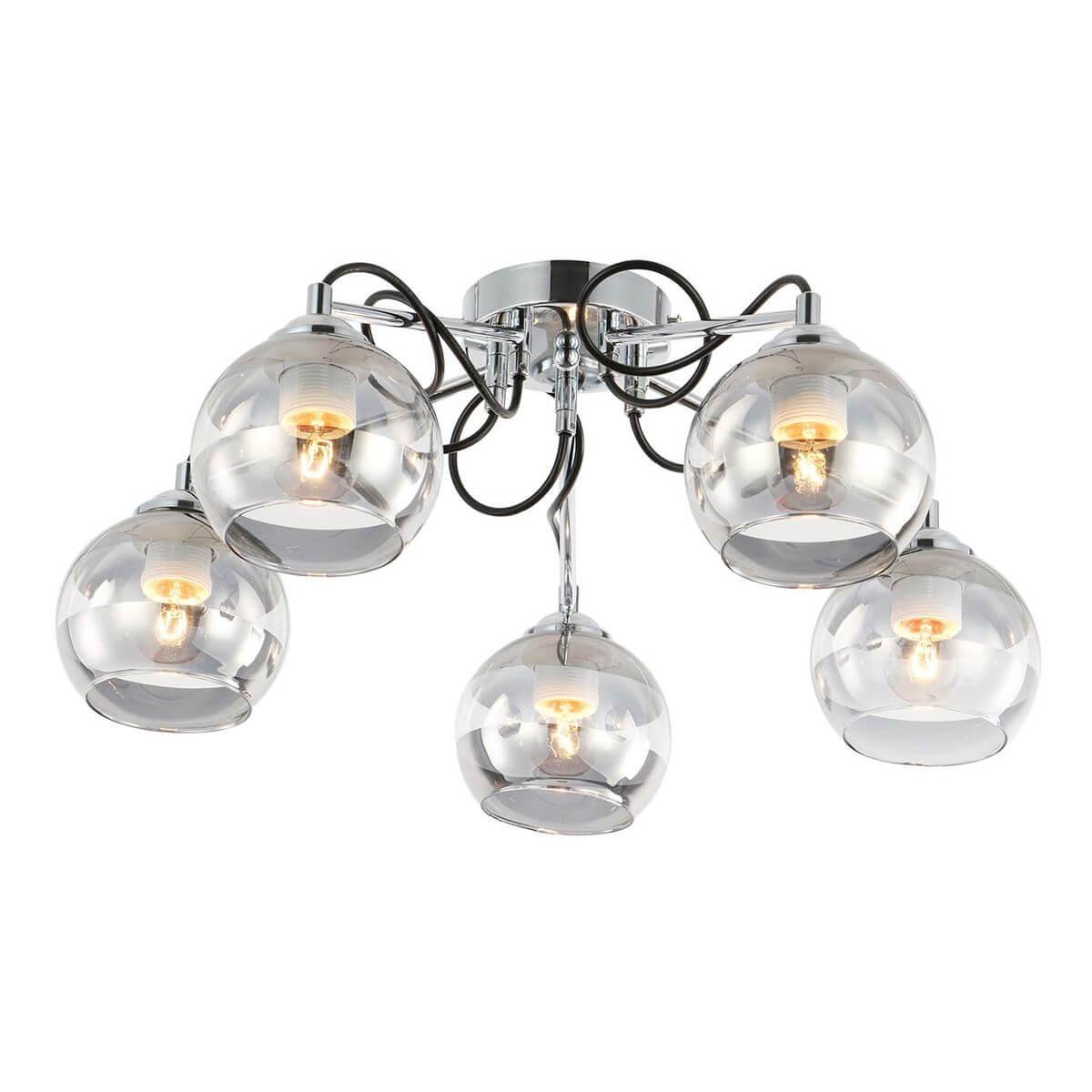 Великолепная модель 1179/5P от великобританской компании Escada относится к коллекции Riley и отлично подойдет для установки на низкий потолок кухни, оформленной в стиле хай-тек. Потолочная люстра Escada Riley 1179/5P с плафонами в виде шаров осветит помещение площадью 18 кв. м. Производитель Escada рекомендует использовать для устройства лампы накаливания с цоколем E27 и мощностью 60 W. Прибор произведен с использованием материалов: стекло и металл и может использоваться для натяжного потолка. Основным цветом товара является зеркальный, хромовый и дымчатый. Потолочная люстра 1179/5P продается по цене 5720 руб. Торопитесь сделать заказ в интернет-магазине SvetONe.