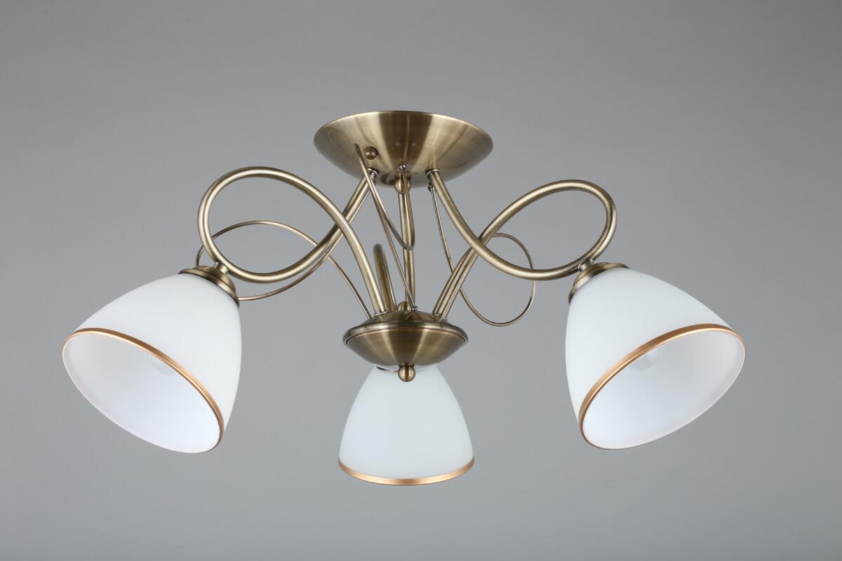 Выдающаяся модель OML-25307-03 от китайской компании Omnilux относится к коллекции Alimini и отлично подойдет для установки на низкий потолок кухни, оформленной в классическом стиле. Потолочная люстра Omnilux Alimini OML-25307-03 с плафонами-конусами осветит помещение площадью 9 кв. м. Производитель Omnilux рекомендует использовать для устройства лампы накаливания с цоколем E27 и мощностью 60 W. Прибор произведен с использованием материалов: стекло и металл и может использоваться для натяжного потолка. Основным цветом товара является белый и бронзовый. Потолочная люстра OML-25307-03 продается по цене 5700 руб. Торопитесь сделать заказ в интернет-магазине SvetONe.