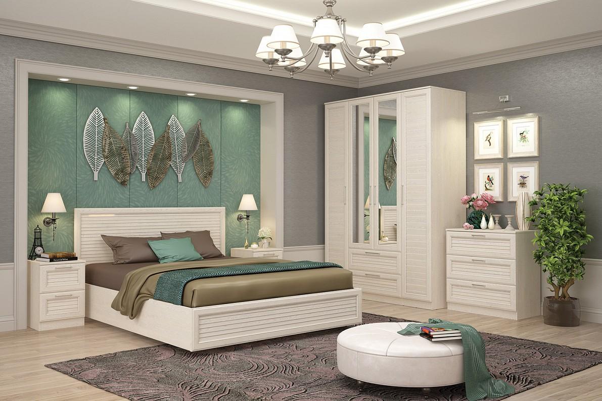 Шкаф 4-х дверный Лоретт дуб белый, зеркальный
